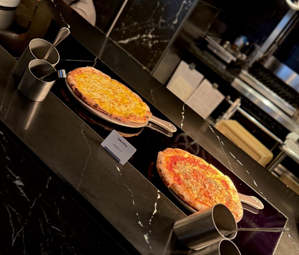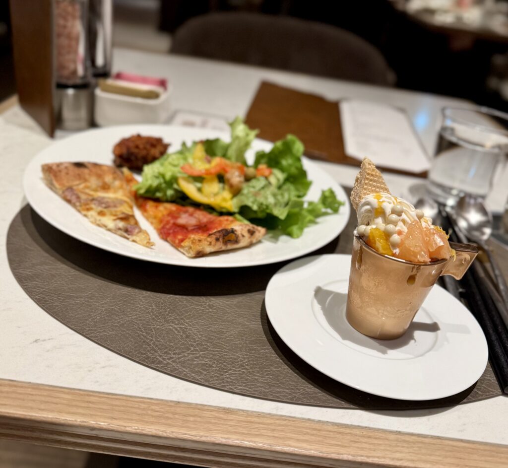 焼き立てピザとパフェを交互に食べるなんて体に悪そうな贅沢も◎
