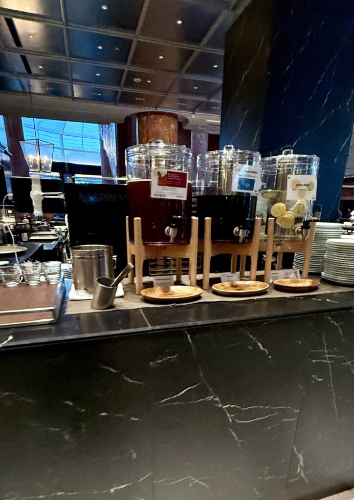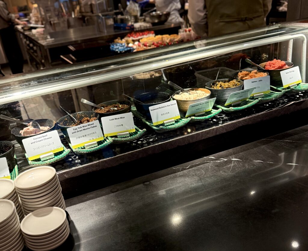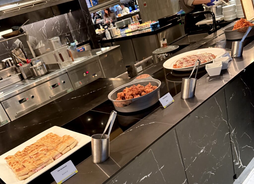 今回カウンター席割引はなかったので、同じ値段ならとテーブル席チョイス。カウンターだとスイーツに並ぶ列で席回りを囲まれてしまうので、可能であればテーブル席の方がゆったりできてやはり良いです。