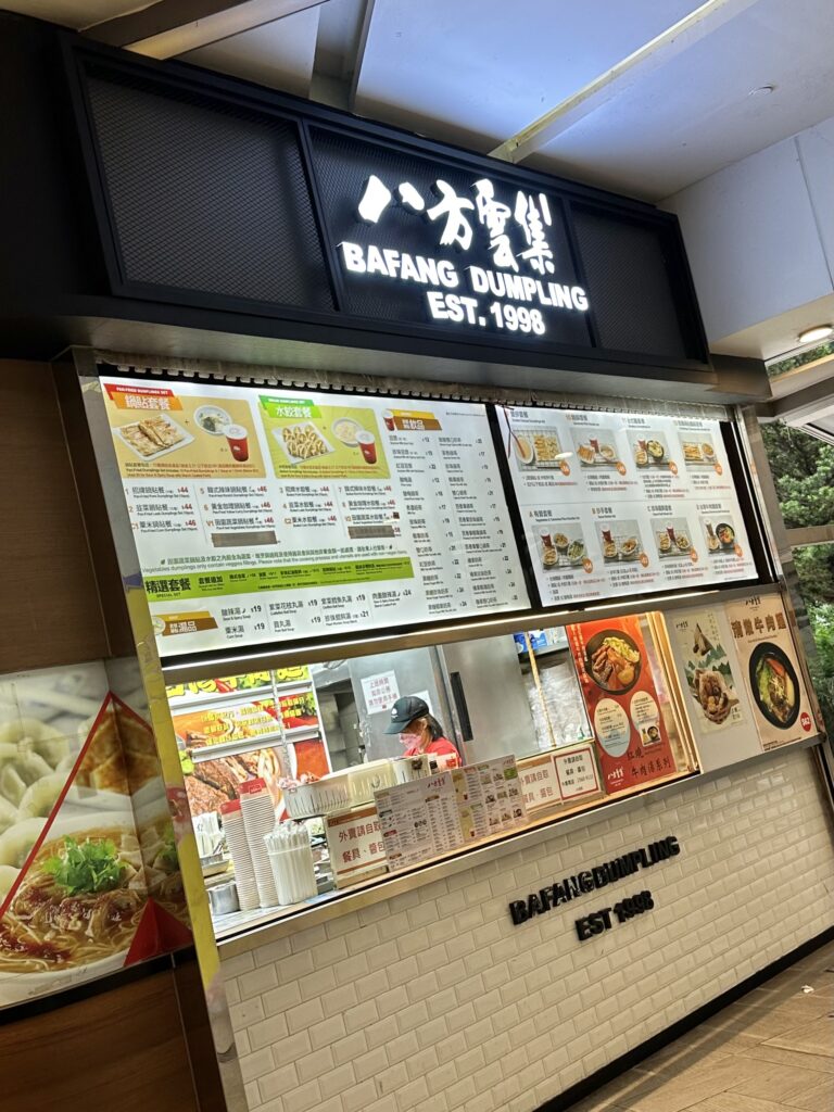 八方雲集は駅前のショッピングモール「富東広場」に入っている台湾餃子のチェーン店。6時台から開いています。支払いはオクトパスか現金。