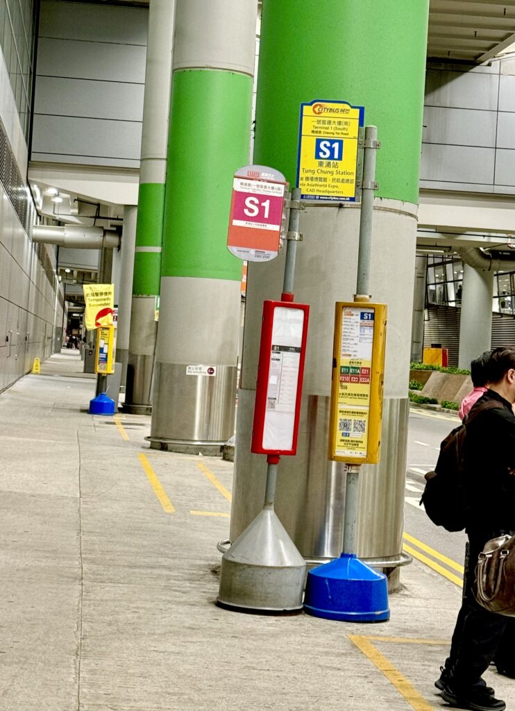 まず早朝に飛行機が着くので、気になるのは始発です。S1 (東涌站行き)バスの始発は5:43。エアポートエクスプレスの始発が5:54なのでバスの方が少し早く出発できます。まぁ、これほど朝早いとどこへ移動してもまだお店も開いていないので急ぐ必要もないのですが笑