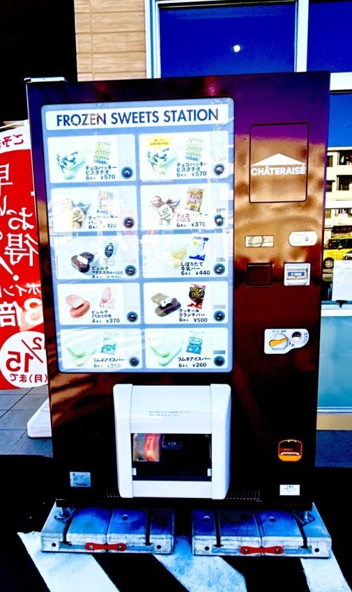 外にはアイスの自販機があり、店舗が閉まっていてもチョコバッキーが買えます。近隣の方が羨ましい。